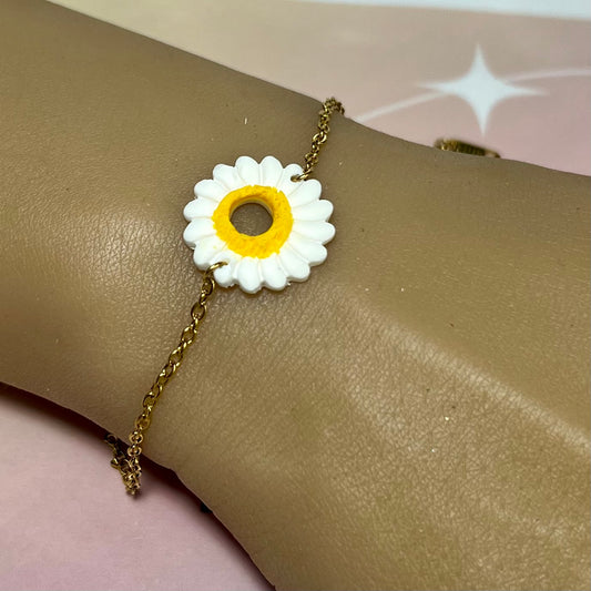 Bracelet Margot – Marguerite en pâte polymère et chaîne en acier inoxydable