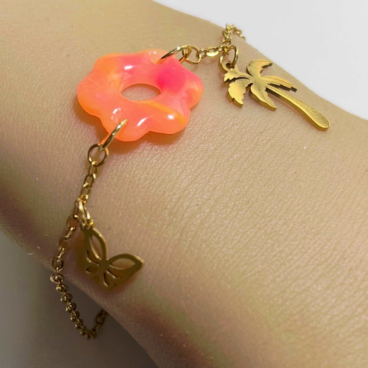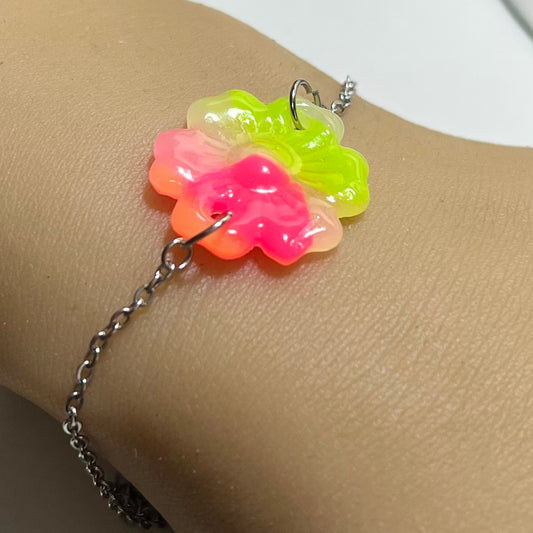 Bracelet Fluo – Acier inoxydable et pâte polymère | Fleur translucide fluo