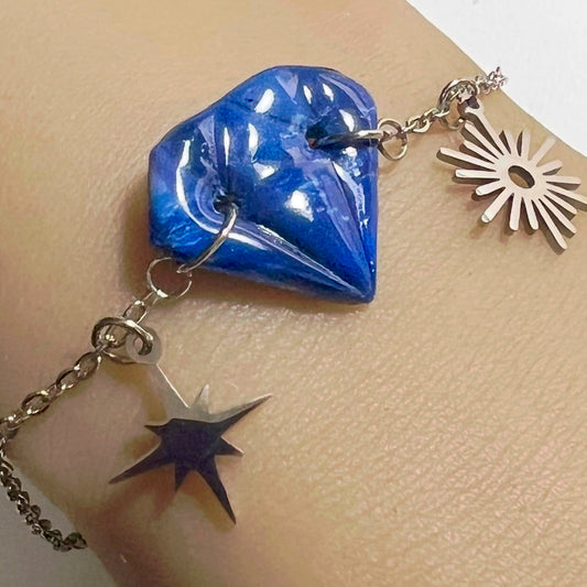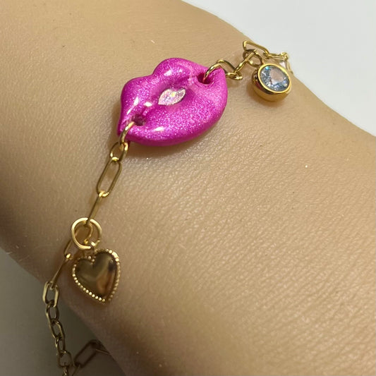 Bracelet Lips – Bracelet en acier inoxydable et pâte polymère fait main | Chaîne dorée ou argentée