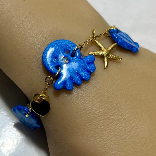 Bracelet Poulpy – Bijou marin fait main en acier inoxydable et pâte polymère métallisée (4 coloris)