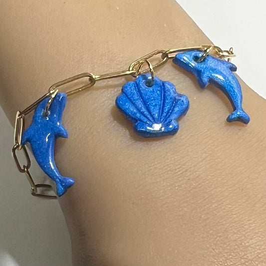 Bracelet Marin en Acier Inoxydable et Pâte Polymère – Coquillage , Poisson et Dauphin