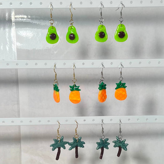 Boucles d'Oreilles Fruits en acier inoxydable fait main – Citron-Fraise-Palmier-Orange-Cerise-Ananas–Avocats- dorée ou argentée