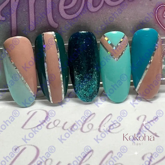 Kit de Press On Nails " les paillettes vertes , gold , rose gold et silver"