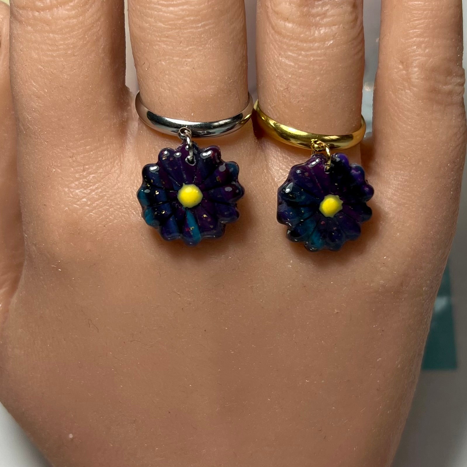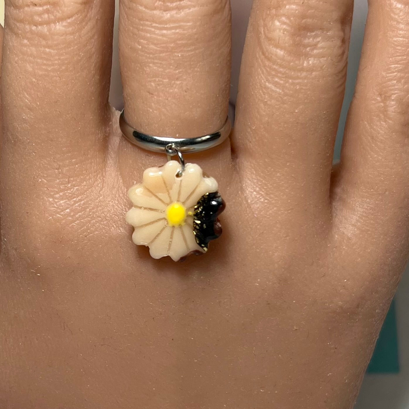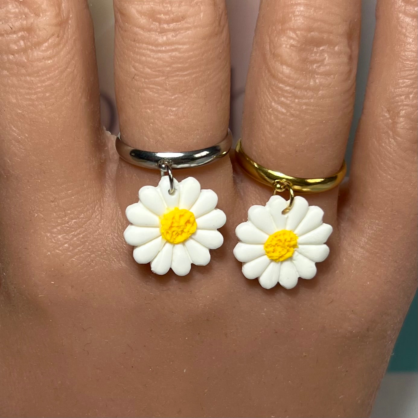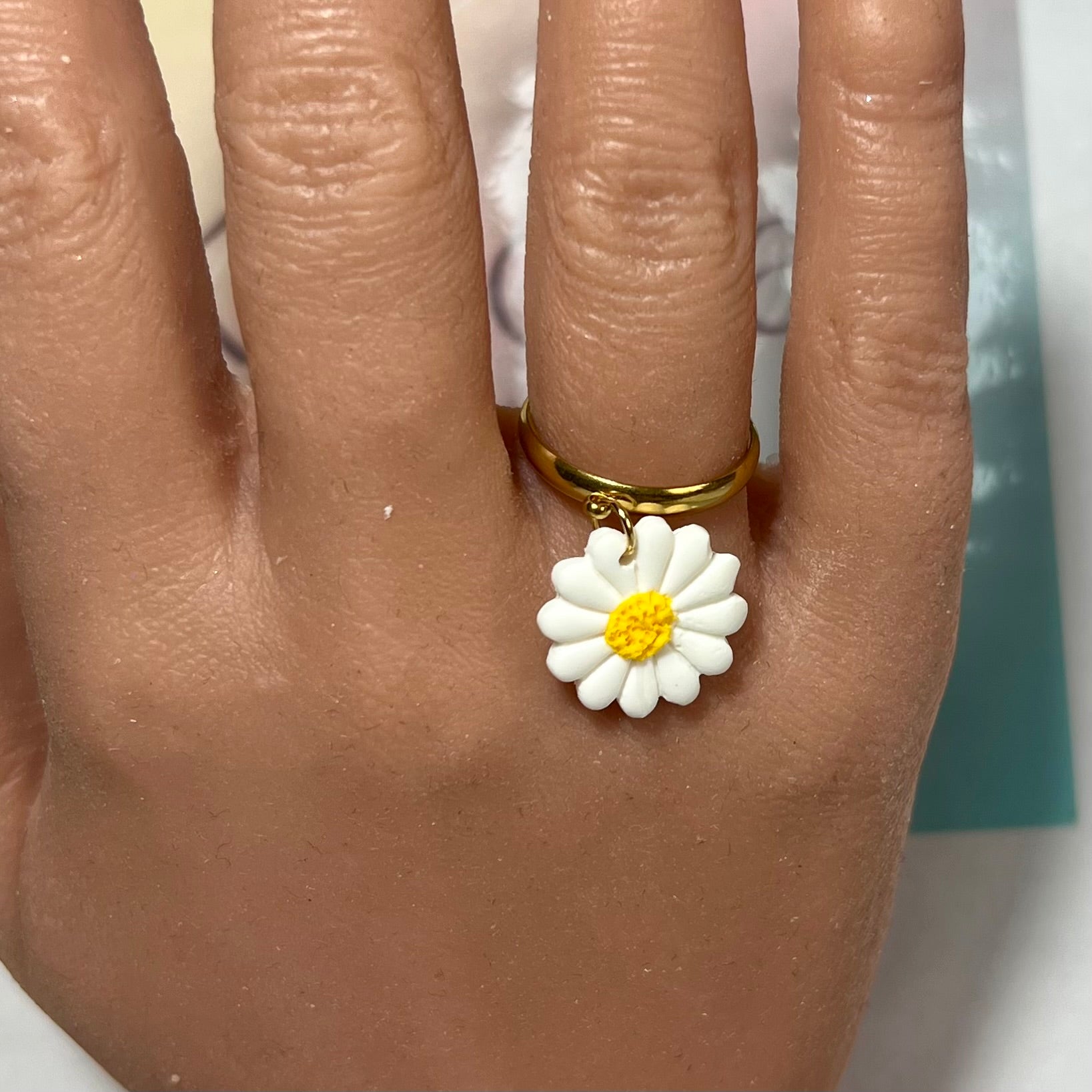 Les bagues mini Margot sont l’équilibre parfait entre finesse florale et audace stylée. Chaque bague, entièrement ajustable, est montée sur une base en acier inoxydable , résistante à l’eau et à la vie. En breloque centrale, une mini marguerite en pâte polymère, façonnée à la main, s’affiche dans des motifs originaux :