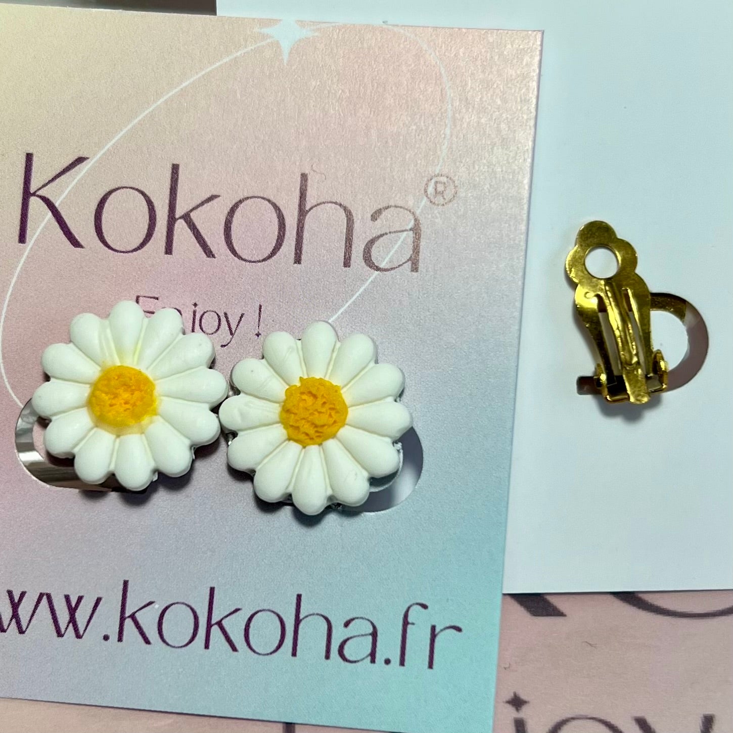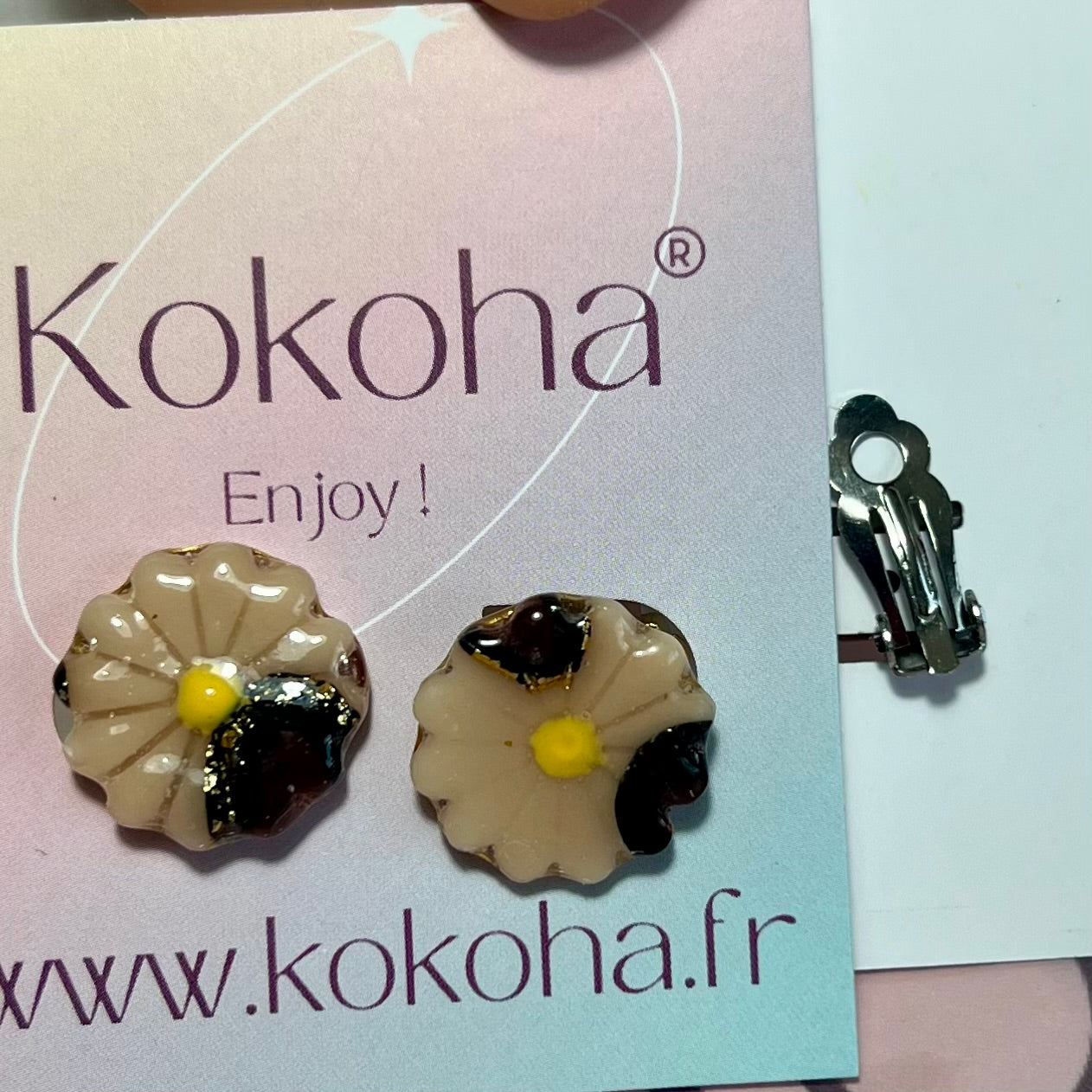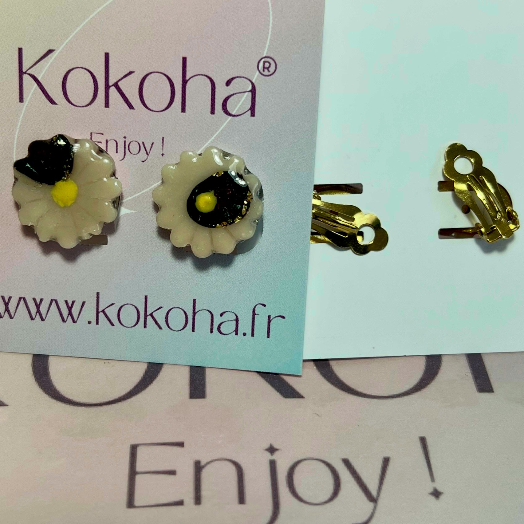 🌼 Boucles pinces mini Margot – Clips en acier inoxydable & fleurs en pâte polymère