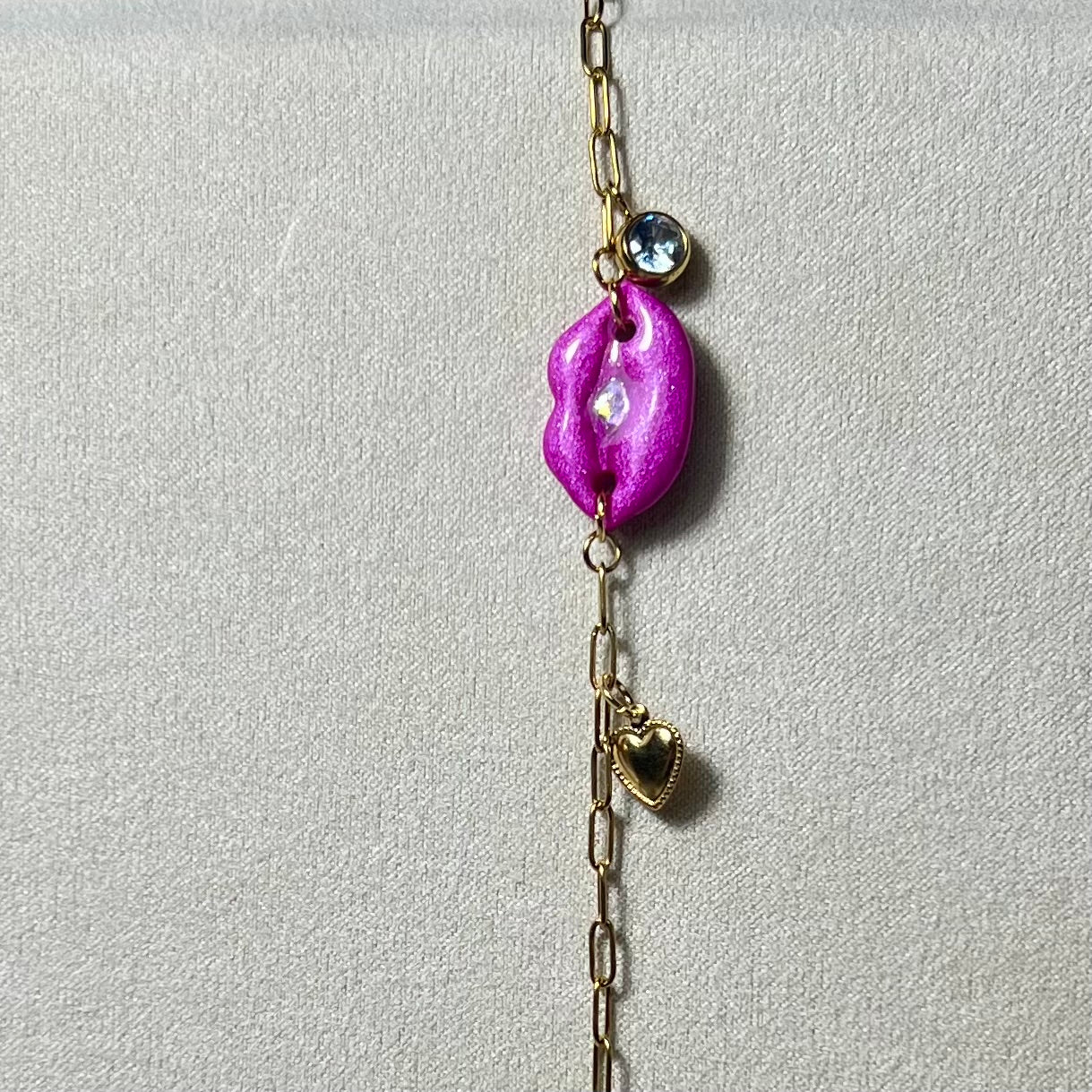 Bracelet Lips – Bracelet femme en acier inoxydable & pâte polymère fait main | Chaîne dorée ou argentée