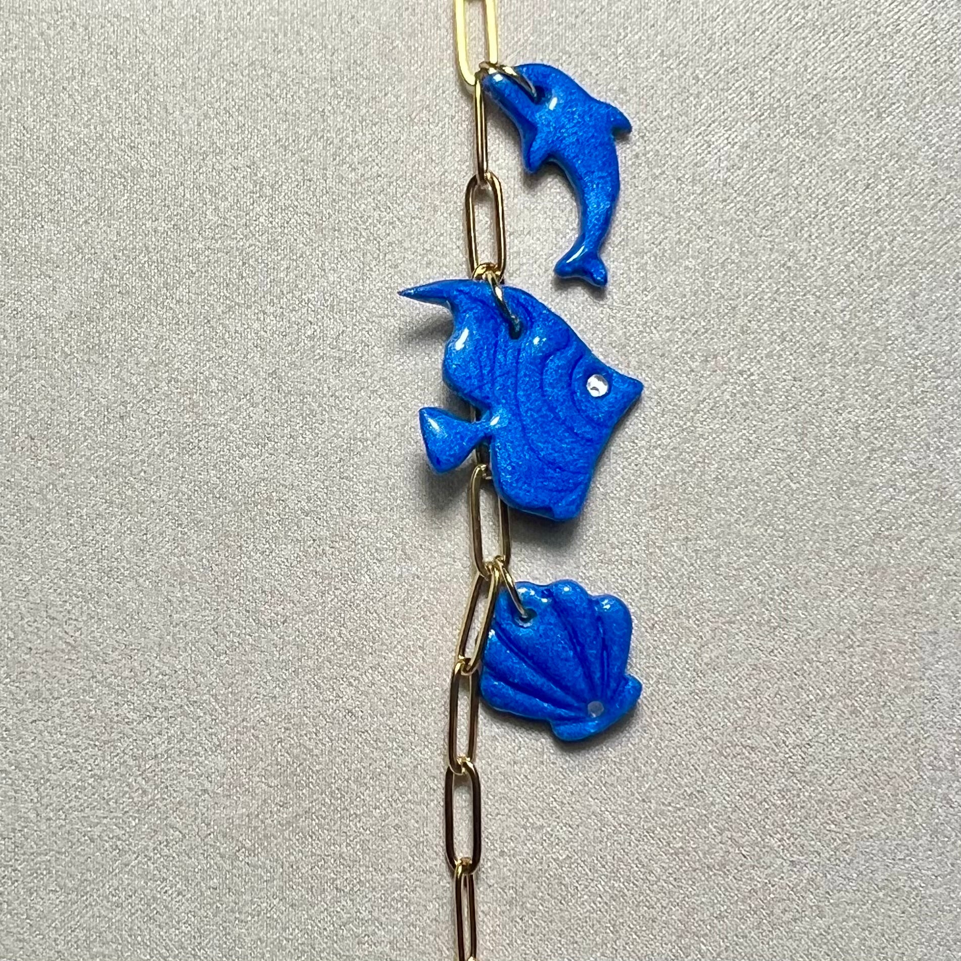 Bracelet Marin en Acier Inoxydable et Pâte Polymère – Coquillage , Poisson et Dauphin