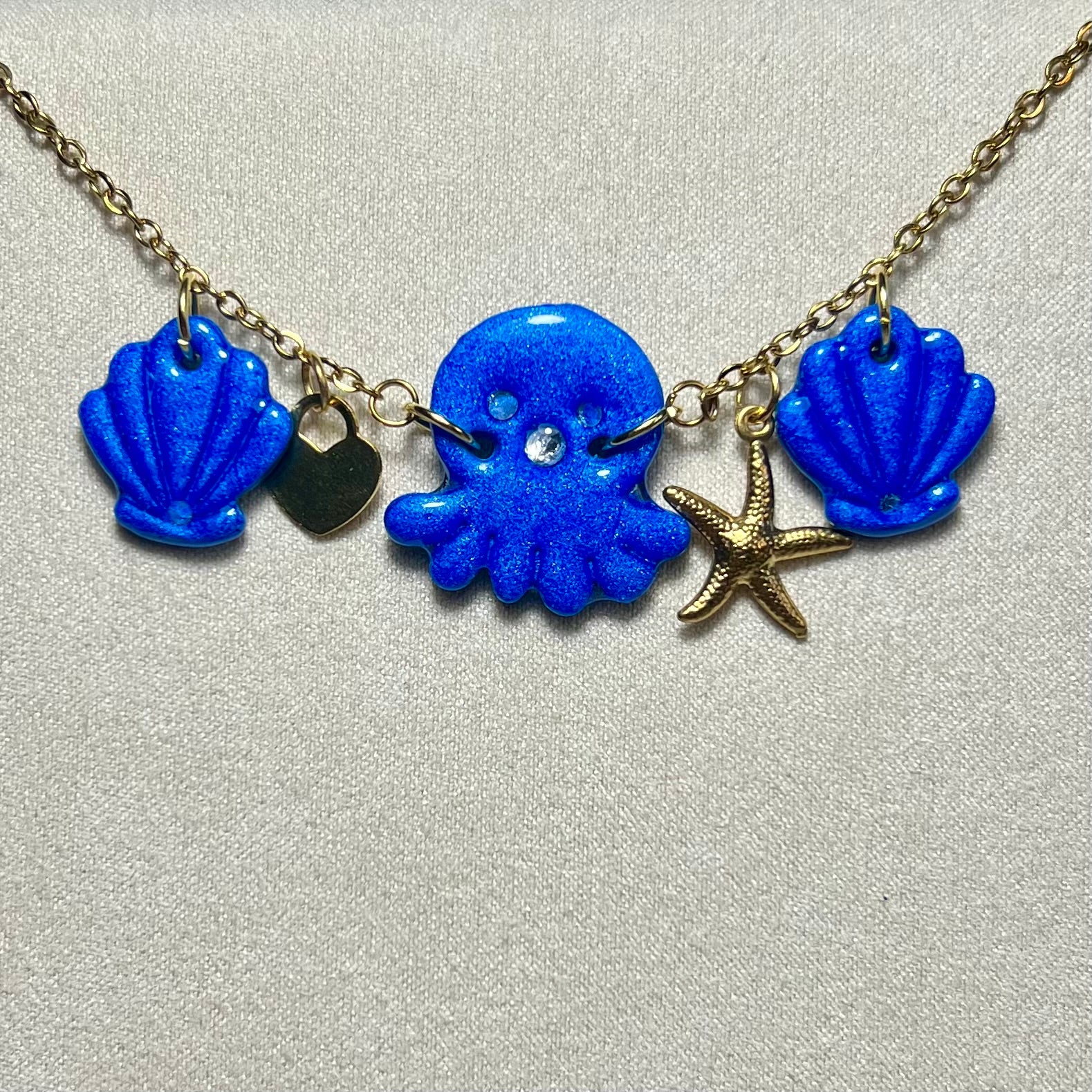 - Un poulpe central en pâte polymère métallisée, travaillé dans les moindres détails